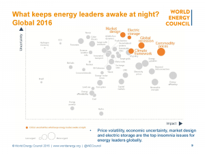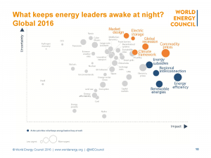 The 2016 report includes assessment of six world regions and over 30 country deep dives. The report highlights 40 issues and their perceived impact, uncertainty, and urgency for global energy leaders and experts. This year’s report identifies “A climate of innovation – responding to the commodity price storm” and for the first time highlights the views of China’s energy leaders amongst the over 30 national deep dives in this pivotal study.