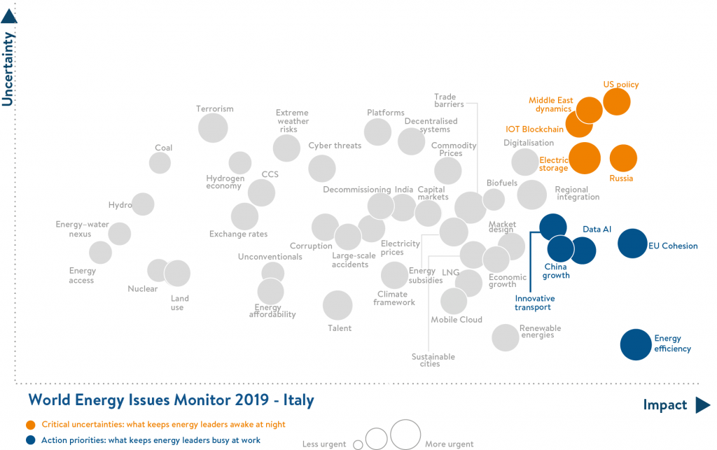 Energy supply balance, institutional framework and technology  developments are key to understanding the 2019 Italian Issues Monitor.